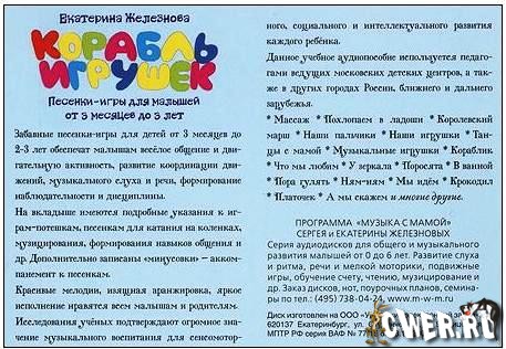 Новые забавные песенки и веселые игры сборника «Корабль игрушек» обеспечат малышам веселое общение и двигательную активность, формирование координации движений и музыкального слуха, наблюдательности и дисциплины, развитие речи. Красивые мелодии, изящная аранжировка, яркое исполнение нравятся всем детям и родителям.