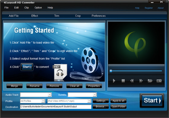 4Eeasysoft HD Converter является простым, легким HD-видео конвертером для преобразования HHD DV, HD TS, MTS, M2TS, HD MOV, HD H.264, HD RM и другие HD видео форматы. 4Eeasysoft HD Converter также помогает вам конвертировать HD-видео в такие форматы, как AVI, WMV, 3GP, MP4, FLV, SWF, ASF и т.д.