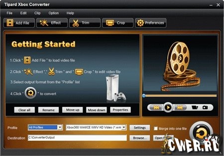 Одна из лучших программ, специально разработанная для пользователей Xbox/Xbox 360. Tipard Xbox Converter поддерживает множество форматов видео, таких как: MPG, MPEG, MPEG2, SWF, FLV, VOB, MOD, MP4, H.264, M4V, AVI, WMV, 3GP, 3GPP, MOV, DivX, XviD, Quciktime Video, DV, MJPG, MJPEG, MPV, and HD video/movie to Xbox/Xbox 360. Кроме того Tipard Xbox Converter поддерживает функции HD, и все ролики с вашего Xbox/Xbox 360 можно будет просмотреть в оригинальном качестве. Ну и как обычно, с помощью редактора можно вырезать аудио из ролика и конвертировать в удобный для вас формат.